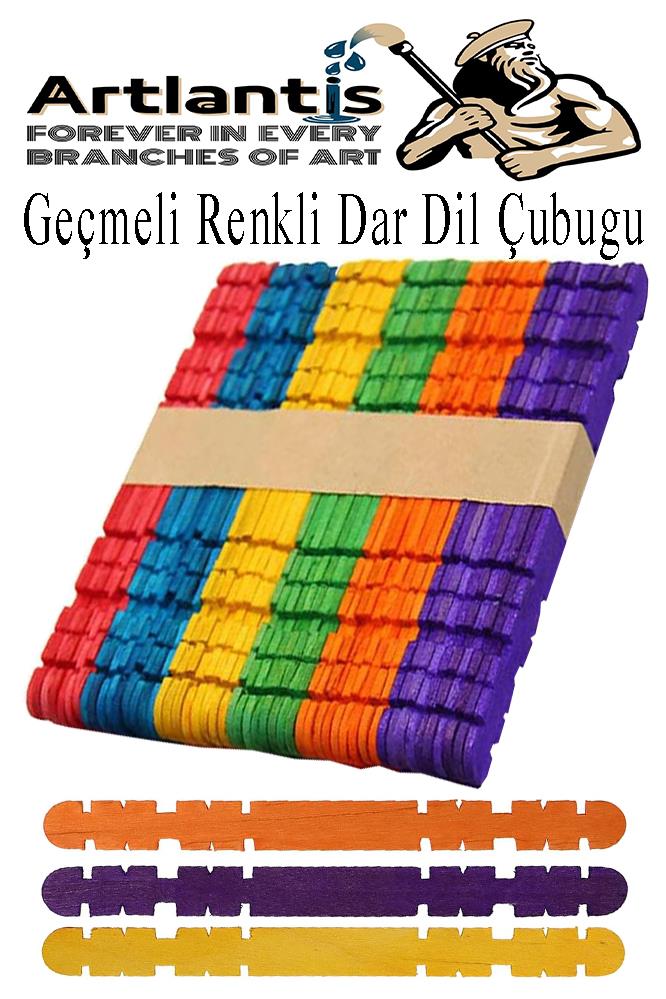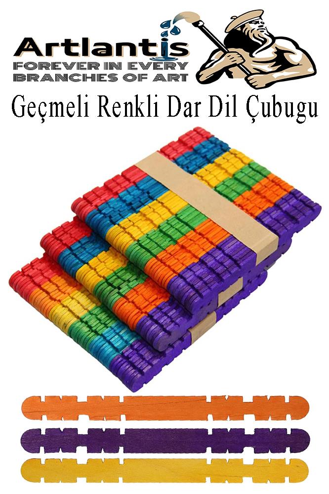 Ürün Adı: Renkli Geçmeli Dil Çubuğu Dar 150 li 1 Paket Çentikli Tırtıklı Geçirmeli Eklemeli Renkli Dondurma Çubuğu Kesik Uçlu Ahşap Çubuk