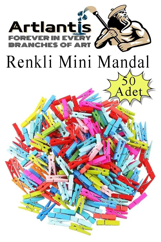 Ürün Adı: Renkli Mini Mandal Ahşap 50 Adet ve Jüt Kırnap İpi 3 Adet Dekoratif Süsleme Fotoğraf Asma Mandalı Dekarasyon