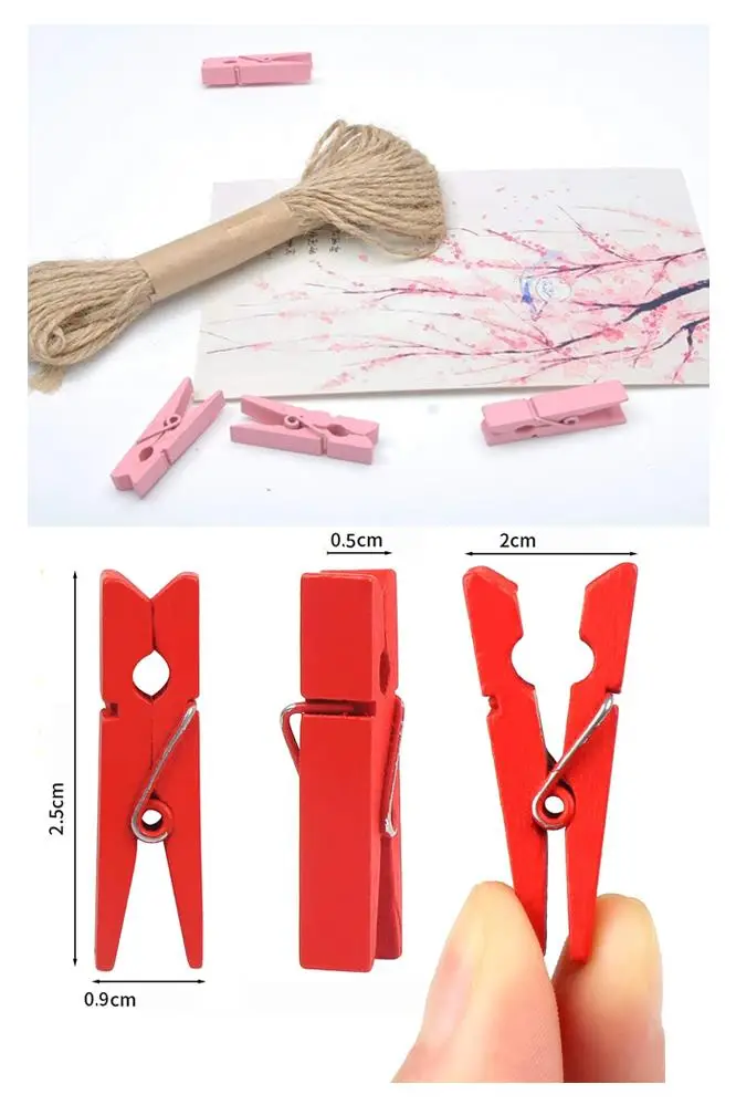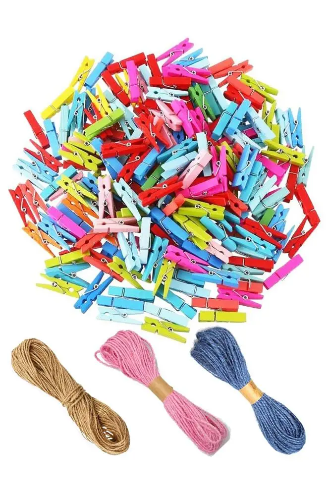 Ürün Adı: Renkli Mini Mandal Ahşap 50 Adet ve Jüt Kırnap İpi 3 Adet Fotoğraf Asma Mandalı Dekarasyon Süsleme Dekoratif