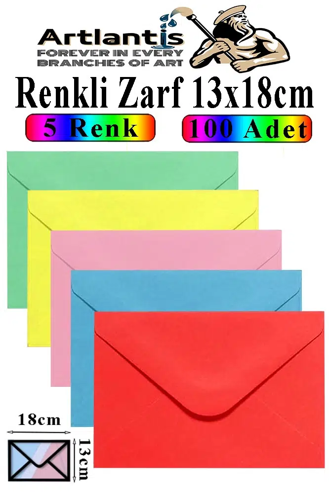Ürün Adı: Renkli Zarf 13x18 cm 100 Adet 5 Renk Mektup Zarfı Davetiye Zarfı Kartpostal Çekiliş Hediye Zarfı