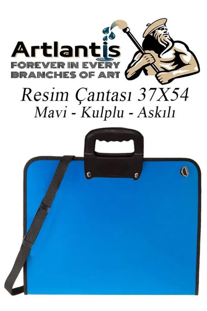 EtiketlerResim Çantası 35x50 cm Resim Defteri Palet Fırça Seti 1 Paket Mavi Resim Proje Çantası Fermuarlı Kulplu 37x54 cm