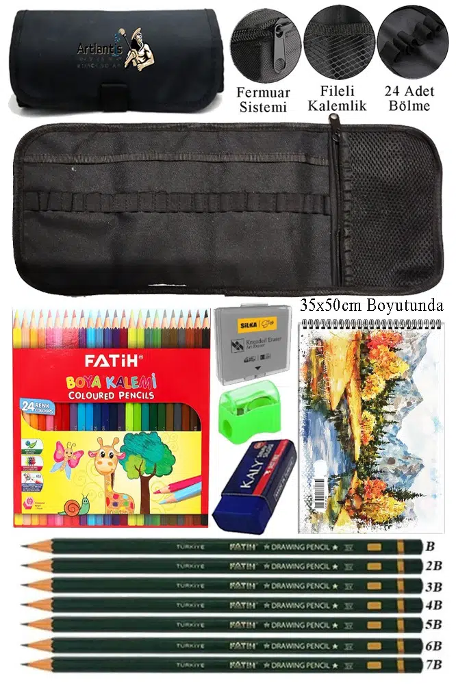 | Etiketler | Resim Defteri 35x50 cm 24 Renk Kuru Boya Dereceli Kurşun Kalem Rulo Kalemlik 24 Bölmeli Hamur Silgi Kalemtraş Görsel |