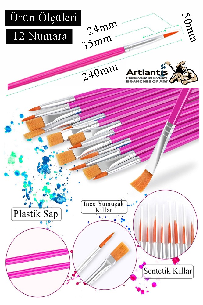 -Artlantis boya fırçası paketi resim dersi ve normal kullanıma uygundur.