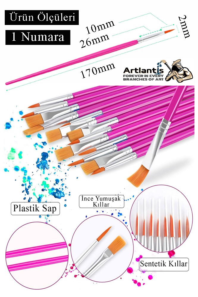 -Artlantis boya fırçası paketi resim dersi ve normal kullanıma uygundur.