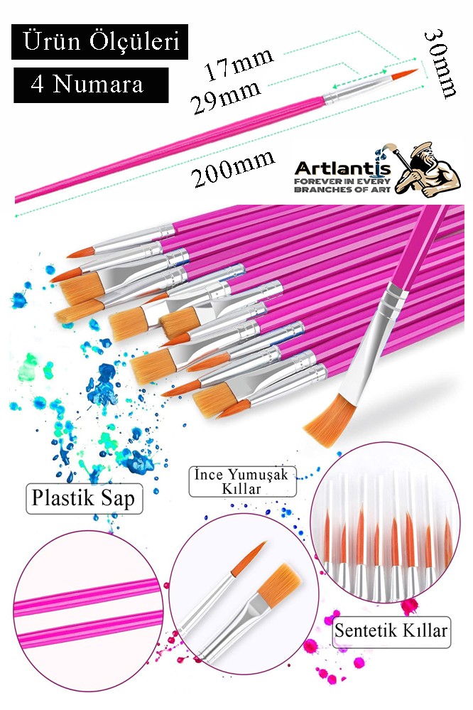 -Artlantis boya fırçası paketi resim dersi ve normal kullanıma uygundur.