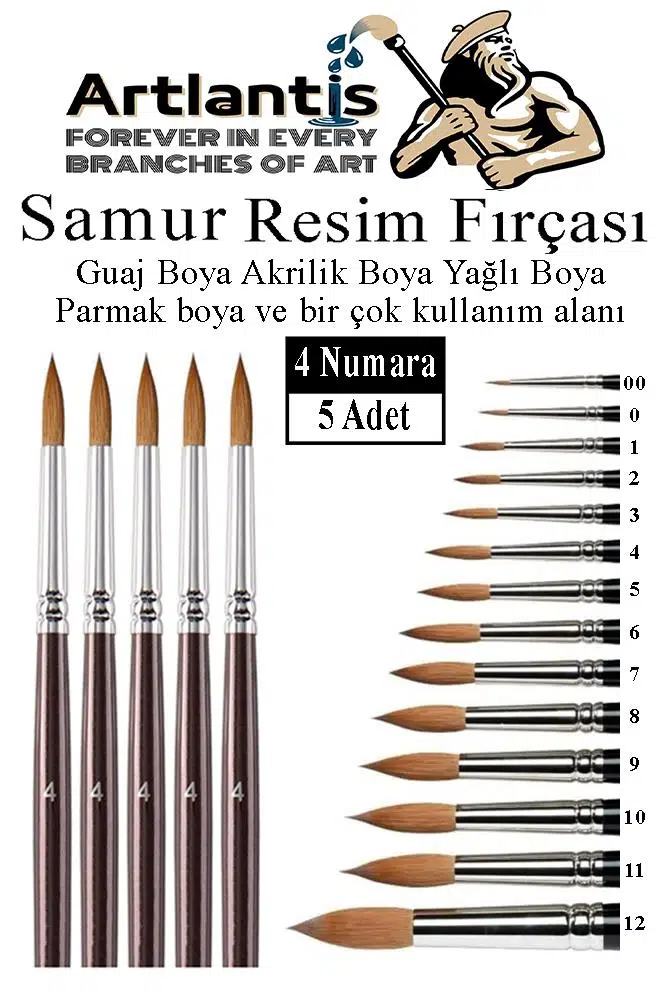 Ürün Adı: Resim Fırçası 3 Numara 5 li 1 Paket Samur Yuvarlak Uçlu Fırça Seti Guaj Sulu Akrilik Yağlı Boya Fırçaları