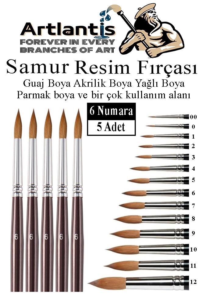 Ürün Adı: Resim Fırçası 6 Numara 5 li 1 Paket Samur Yuvarlak Uçlu Fırça Seti Guaj Sulu Akrilik Yağlı Boya Fırçaları