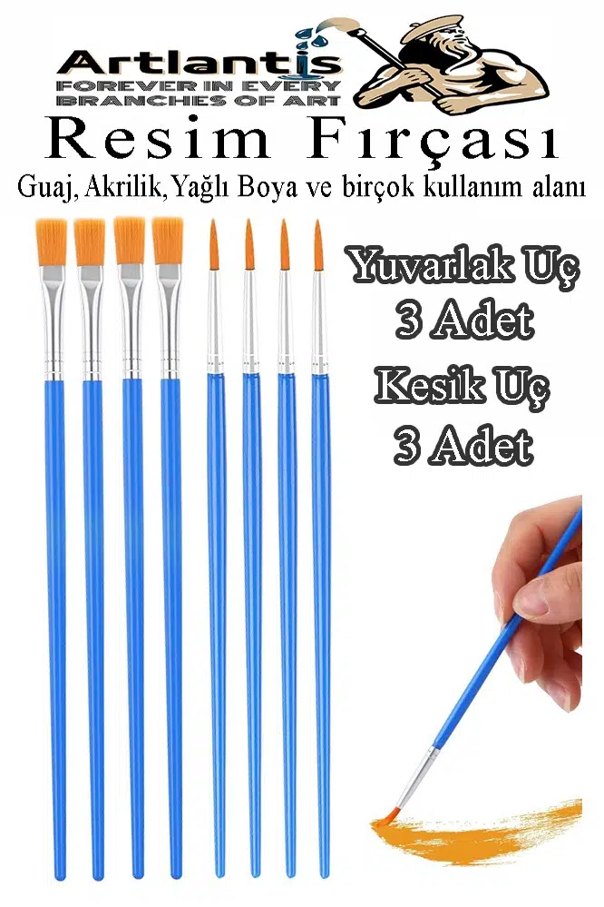 -Artlantis boya fırçası paketi resim dersi ve normal kullanıma uygundur.