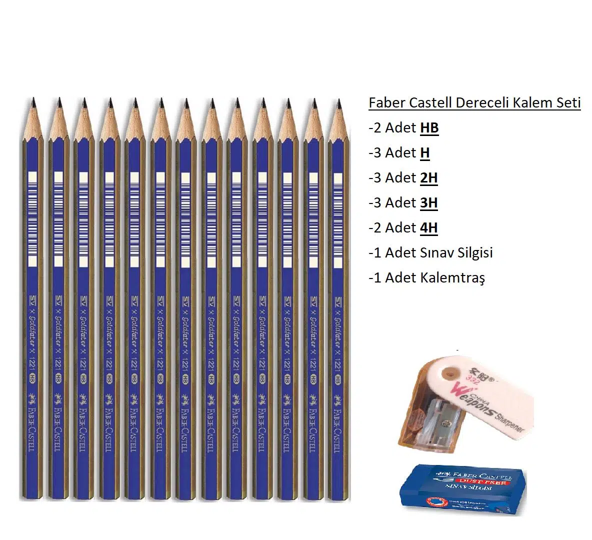 Ürün Adı: Faber Castell Dereceli Kalem Seti 13'lü Silgi ve Kalemtraşlı