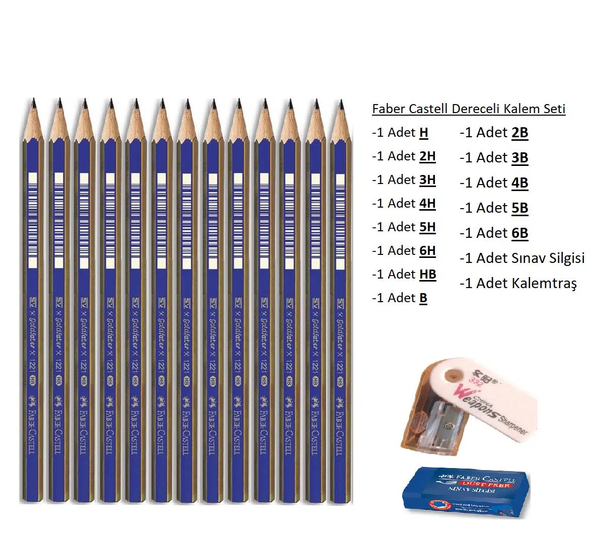 Ürün Adı: Faber Castell Dereceli Kalem Seti 13'lü Silgi ve Kalemtraşlı