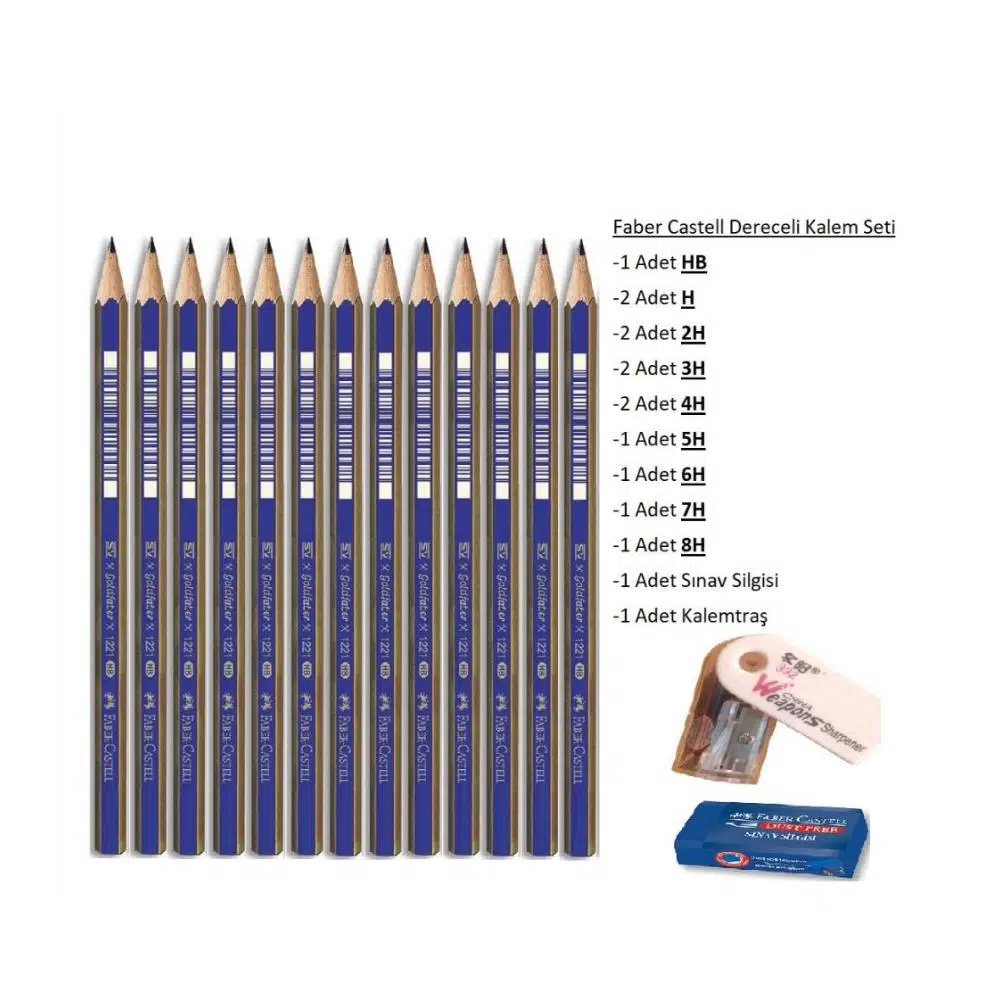 Ürün Adı: Faber Castell Dereceli Kalem Seti 13'lü Silgi ve Kalemtraşlı