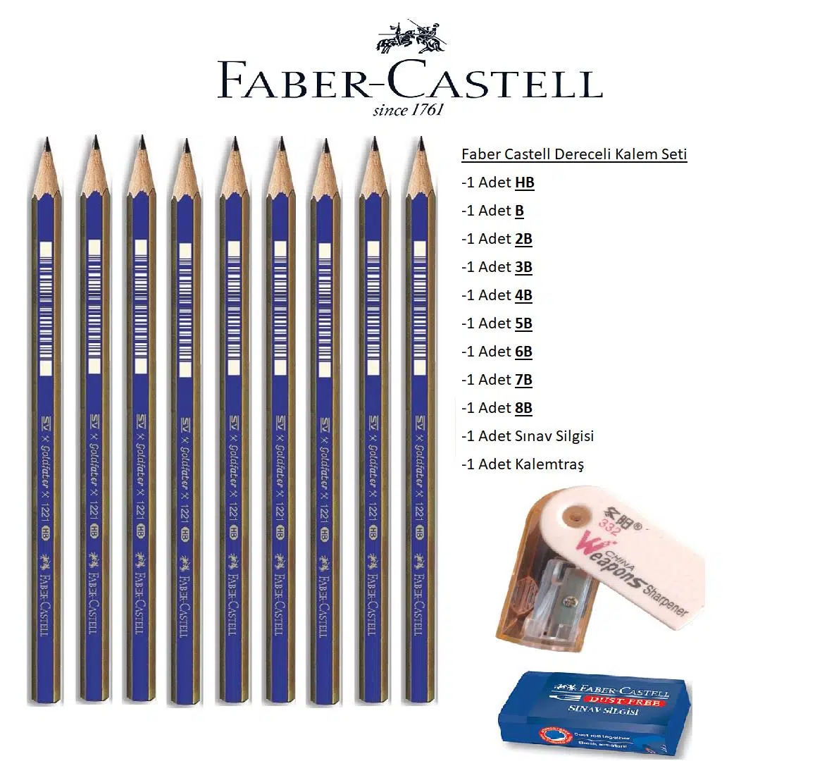 Ürün Adı: Faber Castell Dereceli Kalem Seti 9'lu Silgi ve Kalemtraşlı