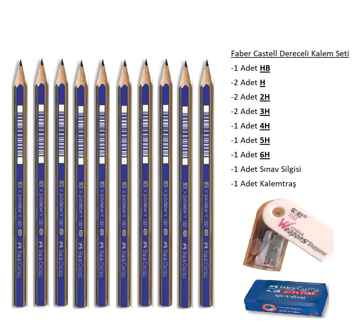 Ürün Adı: Faber Castell Dereceli Kalem Seti 10'lu Silgi ve Kalemtraşlı