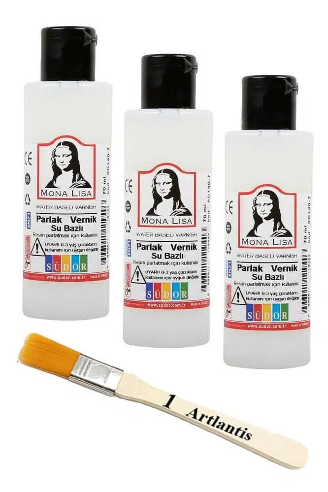 Ürün Adı: Resim Verniği 70 ml Su Bazlı 3 Adet ve Zemin Fırçası Resim Parlatıcı Vernik Hobi Sanat Akrilik Guaj Yağlı Boya