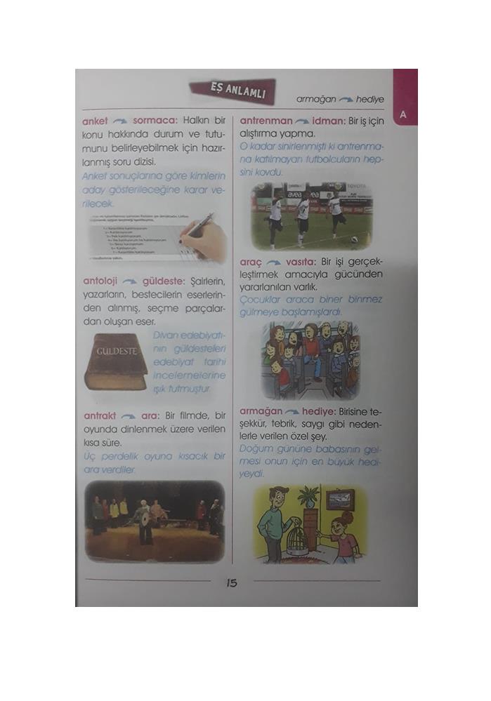 - Eş Anlamlı (Anlamdaş) Kelimeler Yazılışları ve okunuşları farklı olmasına rağmen aynı anlamı taşıyan kelimelerdir. Bu tür kelimeler birbirlerinin yerine kullanılabilirler. Eş Sesli (Sesteş) Kelimeler Yazılışı ve okunuşları aynı olan ama anlamları birbirinden farklı olan kelimelere eş sesli kelimeler denir. Bunlar yalın hâlde olabildikleri gibi ek almış hâlde de olabilirler. Zıt (Karşıt) Anlamlı Kelimeler Anlamca birbirinin karşıtı olan kelimelerdir. Ürün Adı: Resimli, Eş Anlamlı, Eş Sesli, Zıt Anlamlı - Kelimeler Sözlüğü