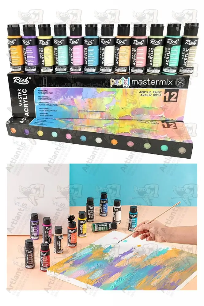 Ürün Adı: Rich Mastermix Akrilik Boya 12 Renk 60 ml 1 Paket Pastel Renkler Akrilik Boya 12 li Profesyonel Tuval Canvas Boyası