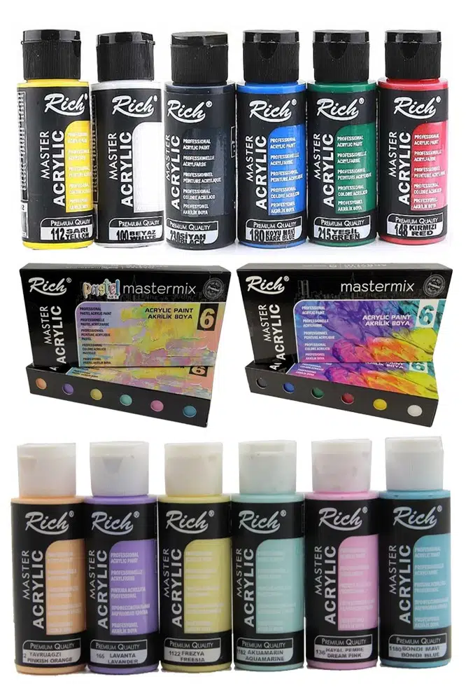 | Etiketler | Rich Mastermix Akrilik Boya 12 Renk 60 ml 1 Paket Pastel ve Ana Renkler Akrilik Boya 12 li Profesyonel Tuval Canvas |