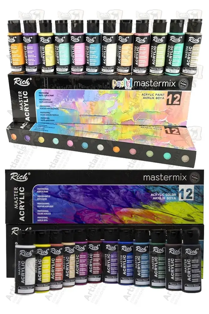 Ürün Adı: Rich Mastermix Akrilik Boya 24 Renk 60 ml 1 Paket Canlı ve Pastel Renkler Akrilik Boya 24 lü Profesyonel Tuval Canvas