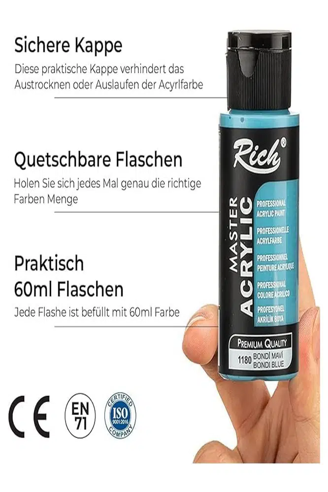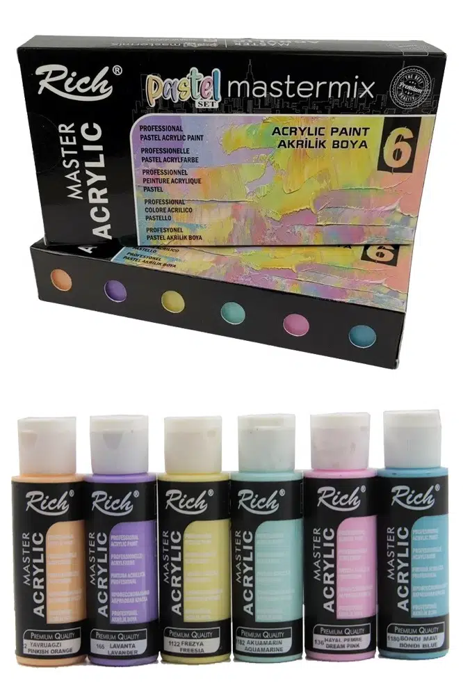 Ürün Adı: Rich Mastermix Akrilik Boya 6 Renk 60 ml 1 Paket Pastel Renkler Akrilik Boya 6 lı Profesyonel Tuval Canvas