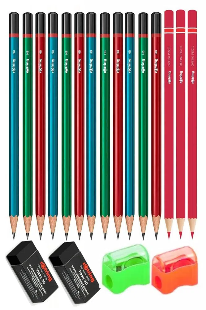 Ürün Adı: Rotring Kurşun Kalem 12 li Kırmızı Kalem 3 Adet Siyah Silgi 2 Adet Kalemtraş 2 Adet HB Mercanlı Siyah Kurşun Kalem Okul