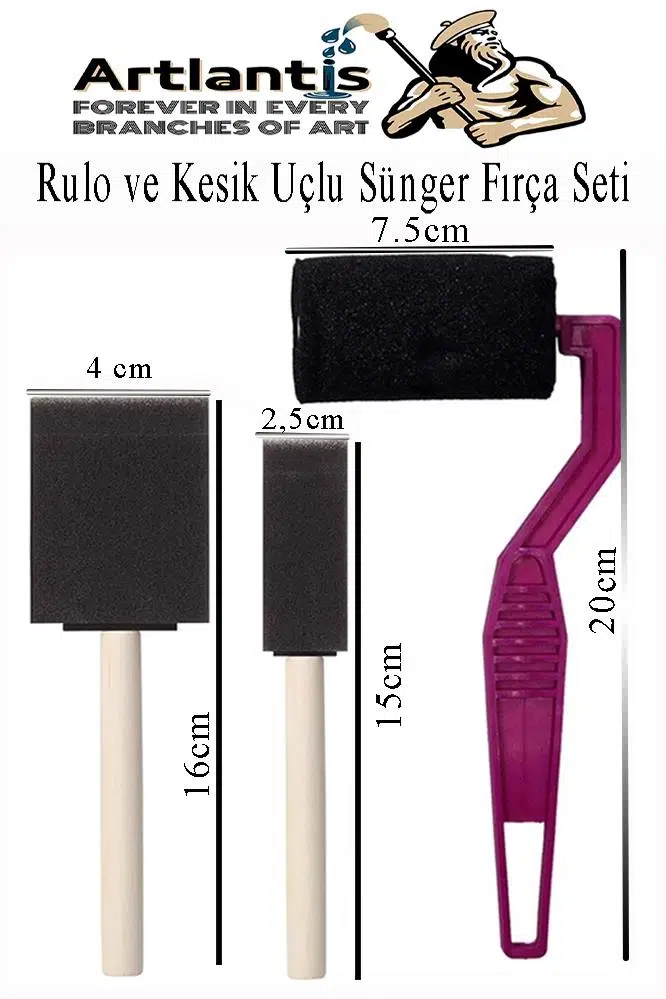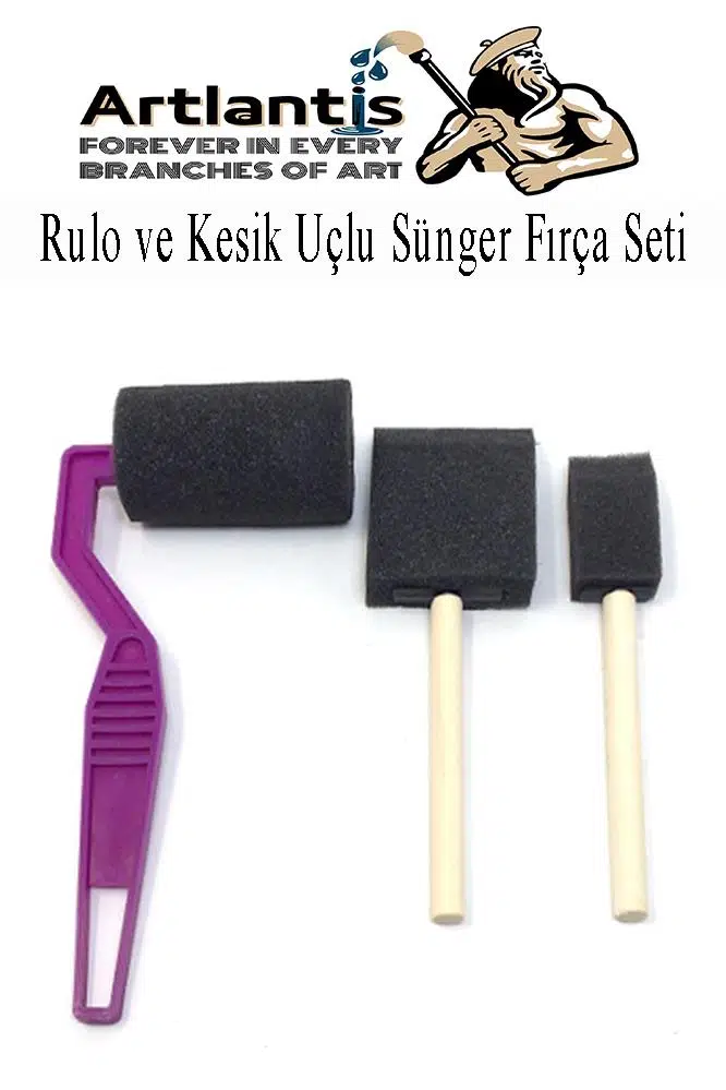 Ürün Adı: Rulo ve Kesik Uçlu Sünger Fırça Seti 1 Paket Akrilik Boya Yağlı Boya Guaj Boya Sulu Boya Sanatsal