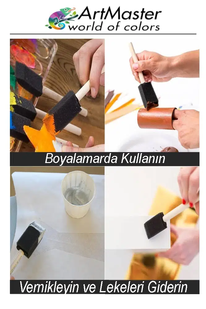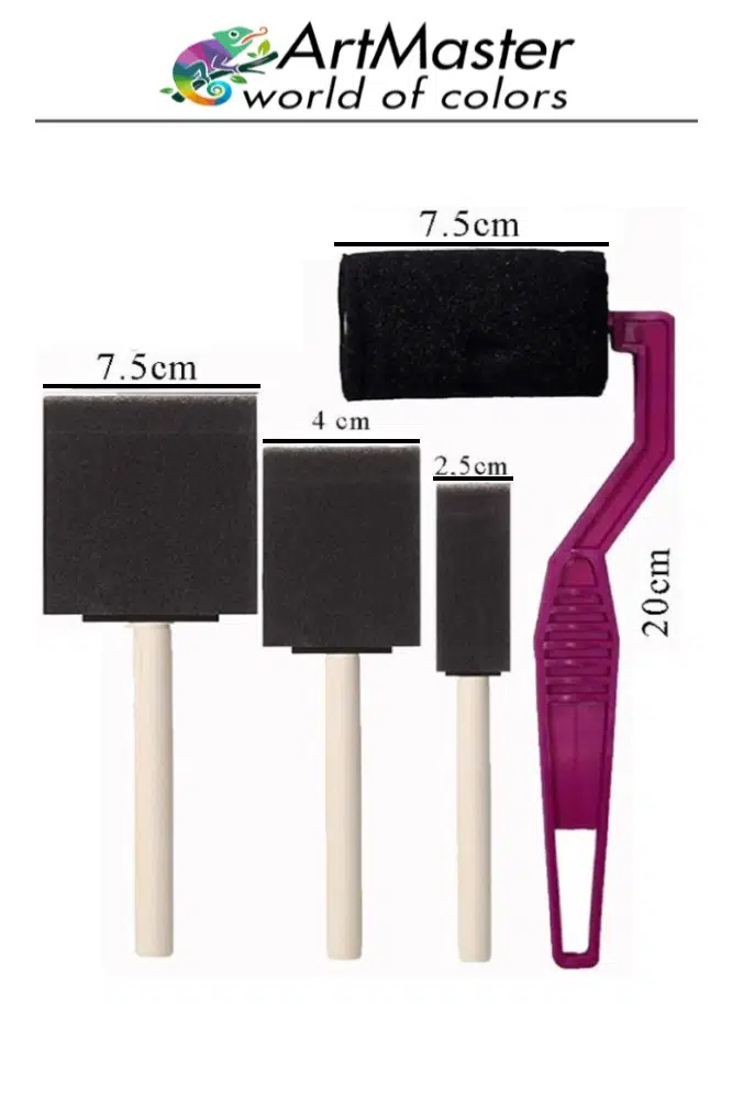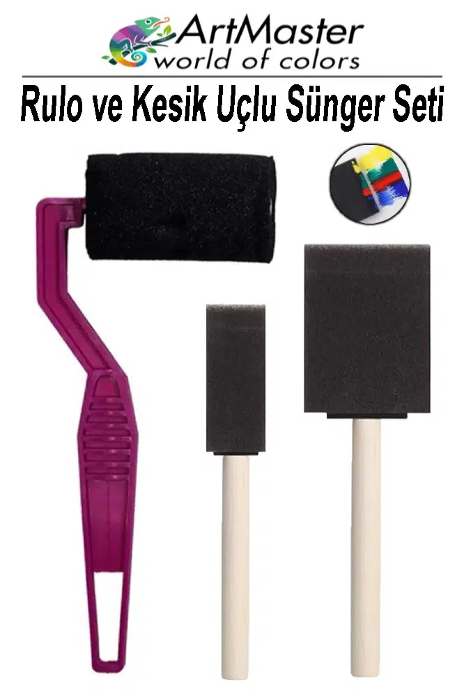 Ürün Adı: Rulo ve Kesik Uçlu Sünger Fırça Seti 4 Lü 1 Paket Sanatsal Yağlı Boya Guaj Boya Sulu Boya Akrilik Boya