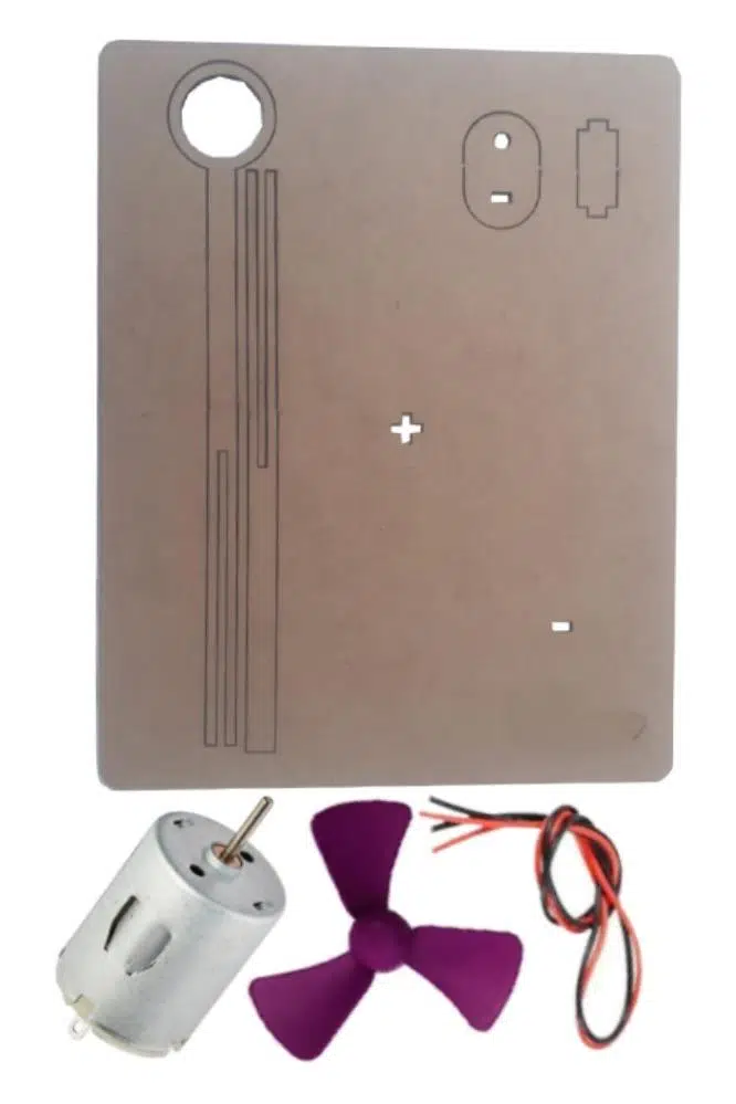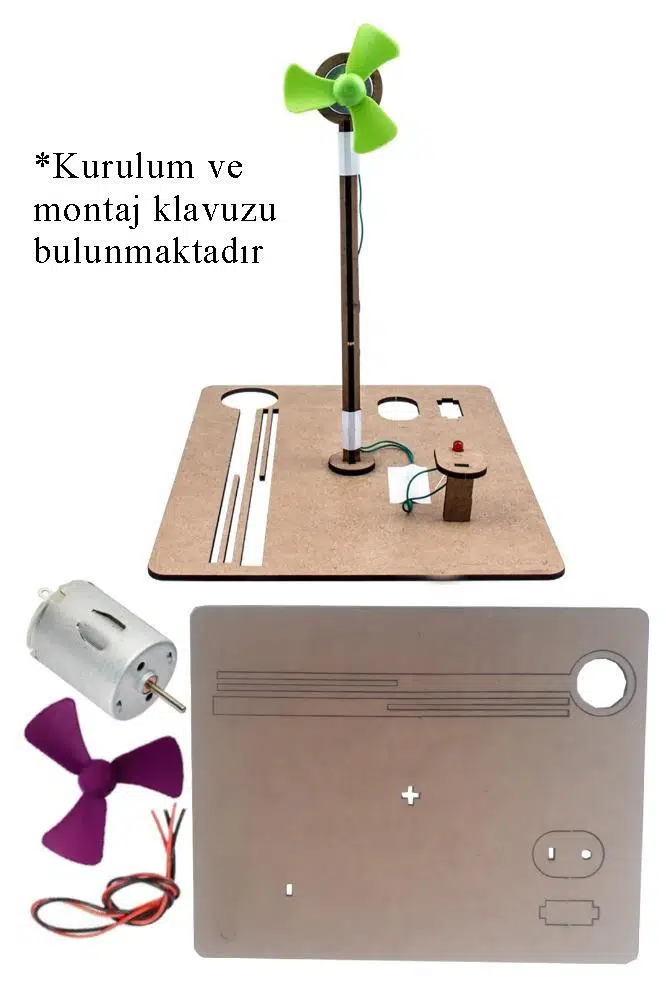 ·- Dinamo motoru 1 adet Rüzgar pervanesi 1 adet Bağlantı kablosu 1 adet mdf tabakası 1 adet