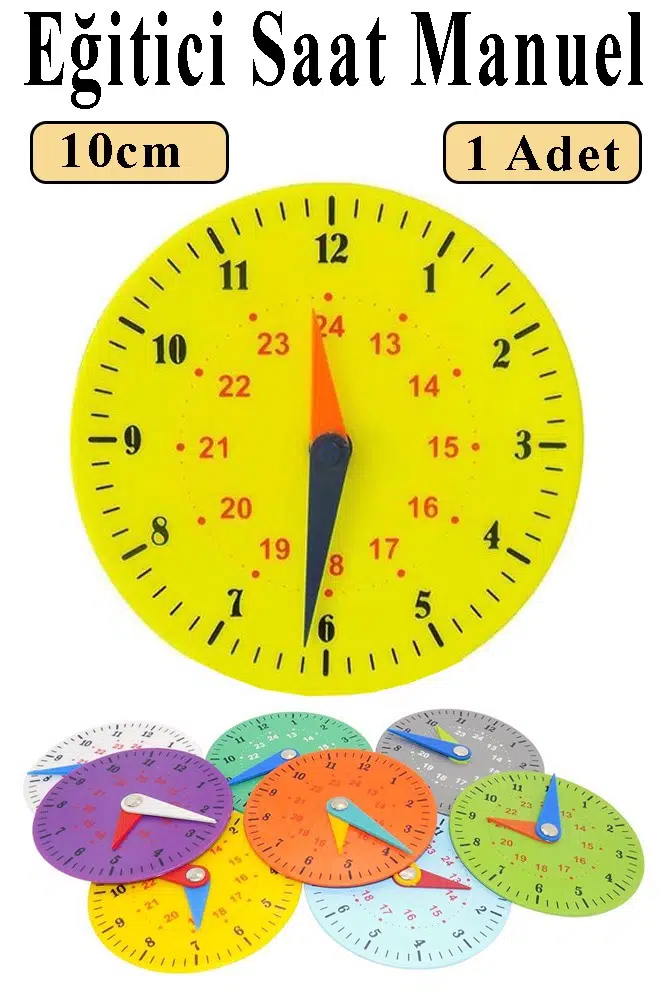 Ürün Adı: Saat Öğretimi Materyali 1 Adet 10 cm Plastik Eğitim Saati Manuel Saat Modeli Kadran Akrep Yelkovan