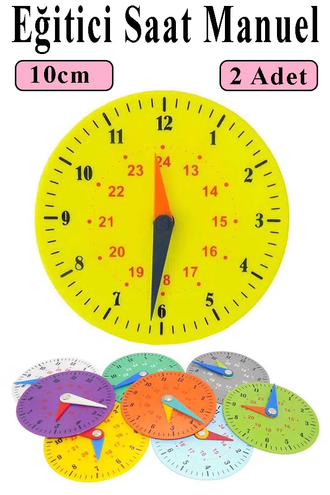 Ürün Adı: Saat Öğretimi Materyali 2 Adet 10 cm Plastik Eğitim Saati Manuel Saat Modeli Kadran Akrep Yelkovan