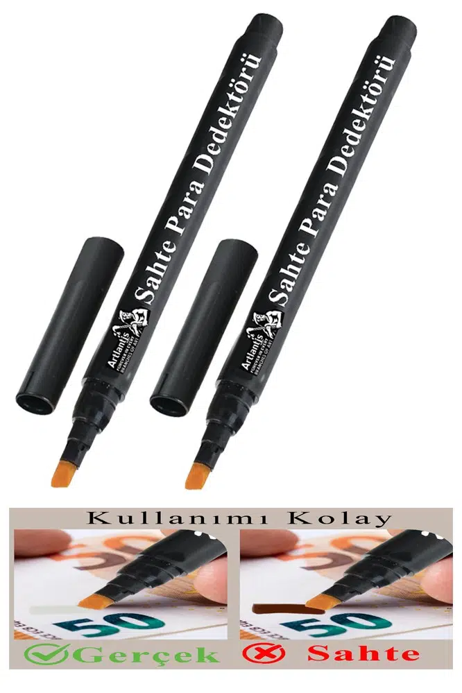 Ürün Adı: Sahte Para Kalemi 2 Adet Para Kontrol Kalemi Sahte Gerçek Para Tespit Ayırt Etme Türk Lirası Dolar Euro