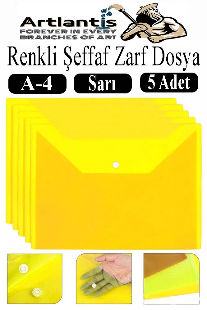 Ürün Adı: Sarı A4 Çıtçıtlı Dosya Şeffaf Renkli Zarf Dosya 5 Adet Çıt Çıtlı Dosya Su Geçirmez 100 Yaprak Kapasite