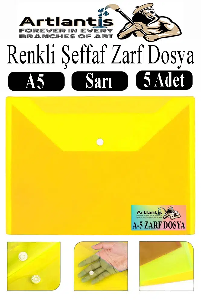 Ürün Adı: Sarı A5 Çıtçıtlı Dosya Şeffaf Renkli Zarf Dosya 5 Adet 17x22 cm Çıt Çıtlı Dosya Su Geçirmez 50 Yaprak Kapasiteli