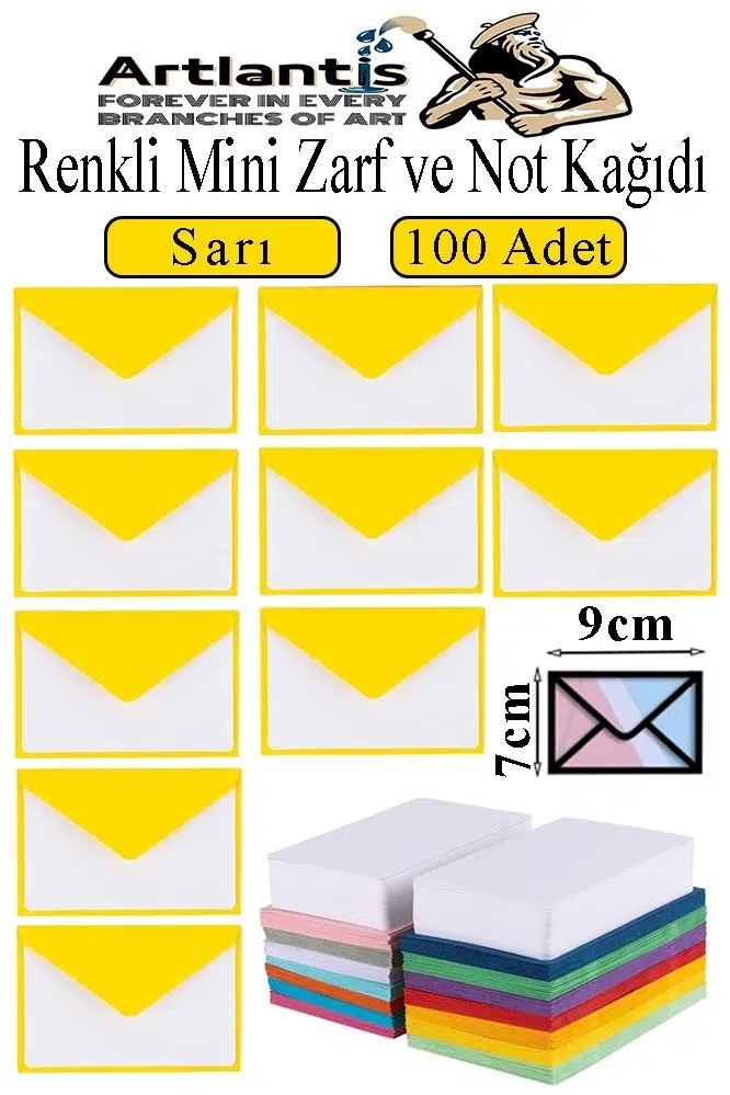 Ürün Adı: Sarı Mini Zarf 7x9 cm Not Kağıtlı 100 Adet Küçük Sarı Zarf Mektup Oyun Zarfı Doğum Günü Dilekleri Zarfı Canlı Renk
