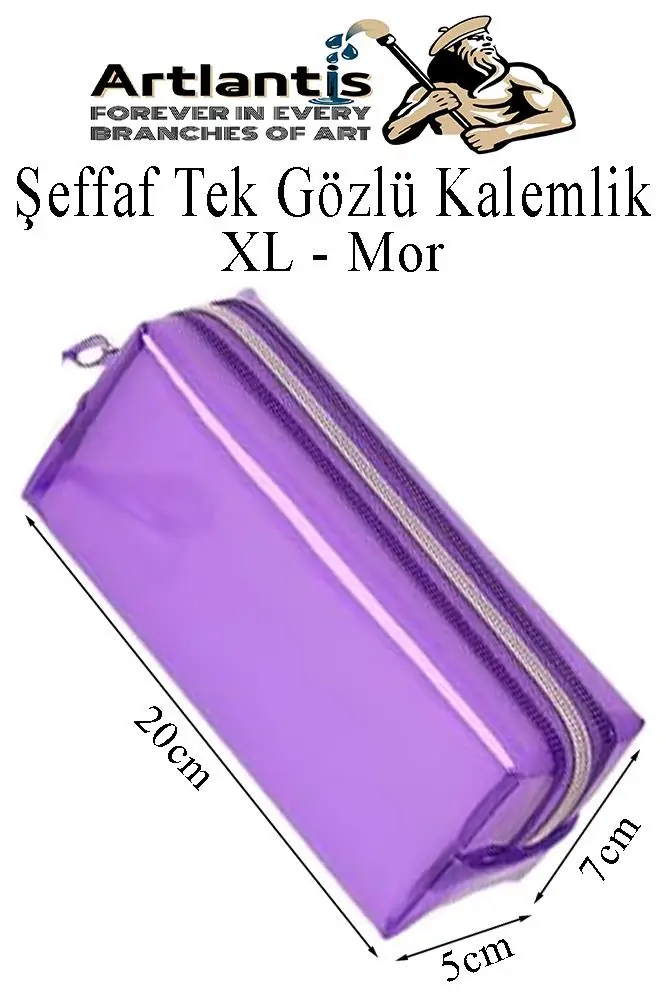 Ürün Adı: Şeffaf Kalemlik XL 1 Adet Tek Gözlü Transparan Kalem Kutusu Fosforlu Renkli Silikon Tek Bölmeli Makyaj Kozmetik Çantası