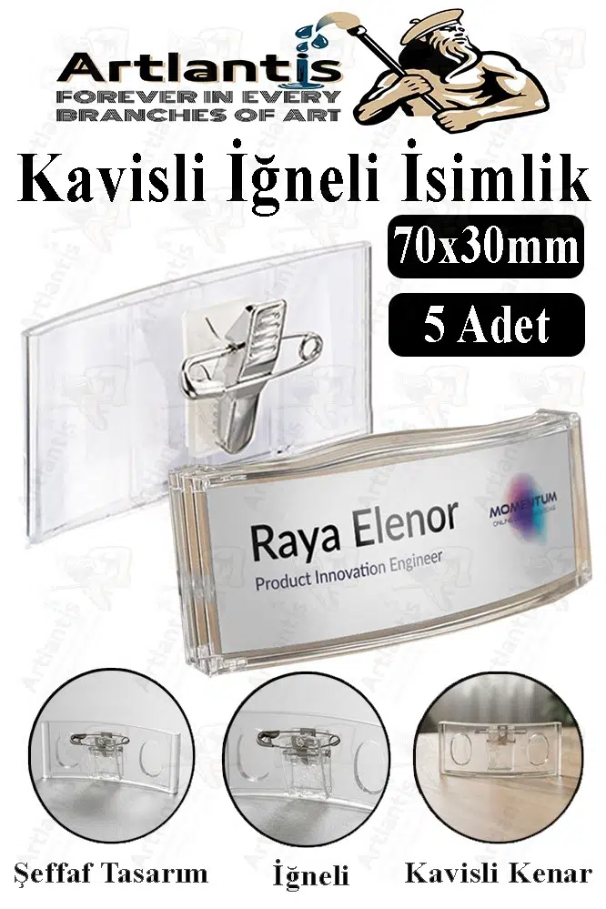 Ürün Adı: Artlantis Şeffaf Kavisli İğneli İsimlik 5 Adet Dikdörtgen İsimlik 70x30cm Personel Yaka İsimliği Şeffaf Kavisli İsimlik Şirket