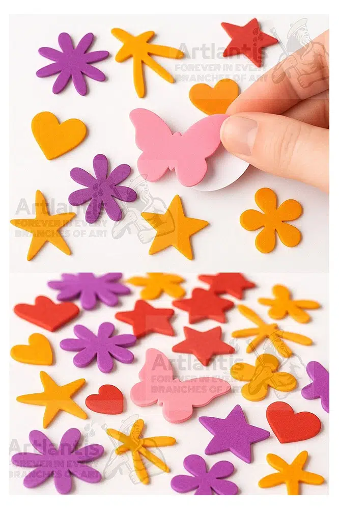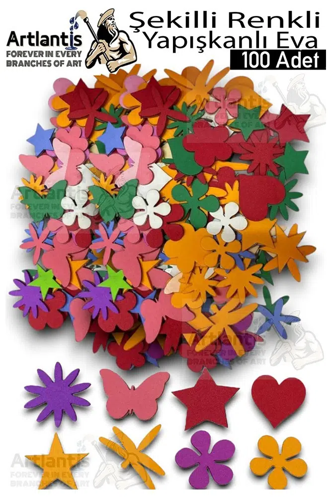 Ürün Adı: Şekilli Eva Yapışkanlı 100 lü 1 Paket Kendinden Yapışkanlı Eva Sticker Kalp Yıldız Okul Öncesi Kreş Ana Okulu Süsleme