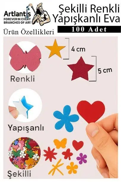 | Etiketler | Şekilli Eva Yapışkanlı 100 lü 1 Paket Kendinden Yapışkanlı Eva Sticker Kalp Yıldız Okul Öncesi Kreş Ana Okulu Süsleme |