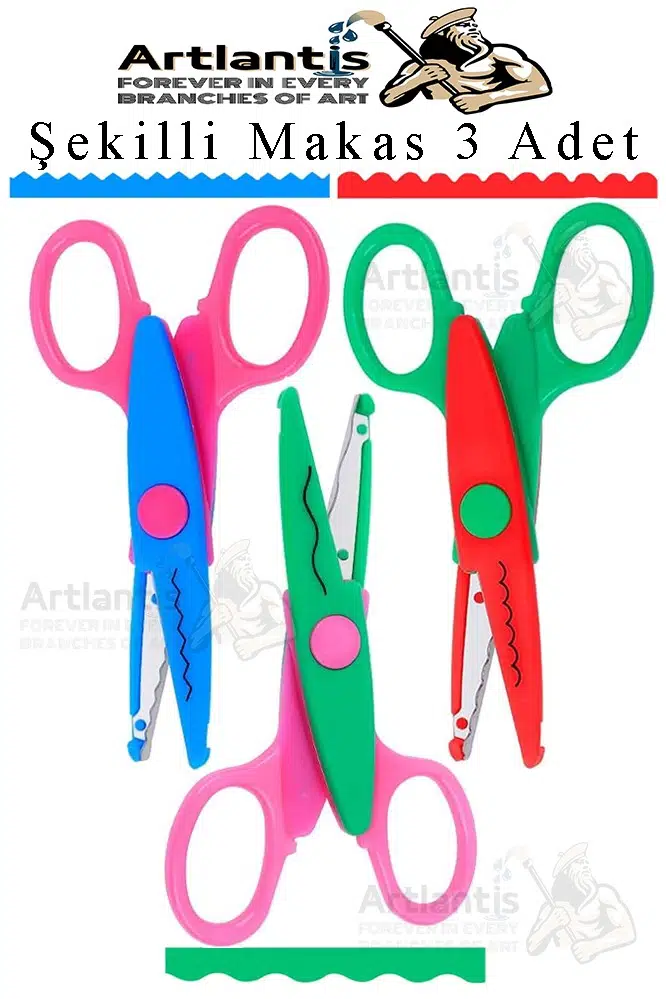 Ürün Adı: Şekilli Makas Metal Plastik Kaplamalı 3 lü 1 Paket Desenli Tırtıklı Şekilli Kesen Makas Seti Güvenli Çocuk Okul Öncesi