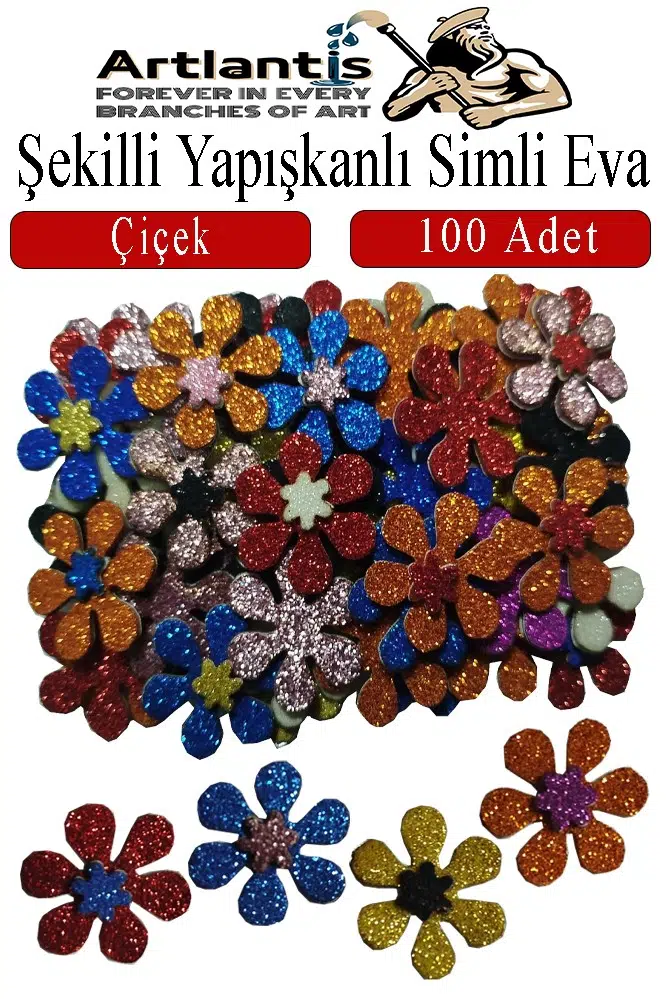 Ürün Adı: Şekilli Simli Eva Yapışkanlı Çiçek 100 lü 1 Paket Kendinden Yapışkanlı Simli Eva Sticker Okul Öncesi Kreş Ana Sınıfı