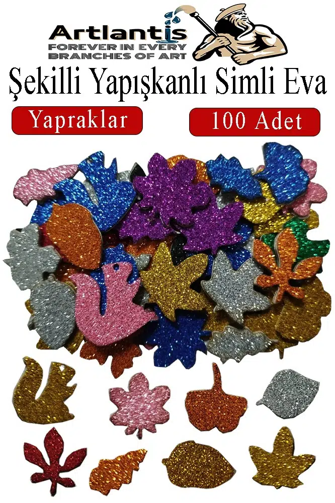 | Etiketler | Şekilli Simli Eva Yapışkanlı Yapraklar 100 lü 1 Paket Kendinden Yapışkanlı Simli Eva Sticker Okul Öncesi Kreş Ana |