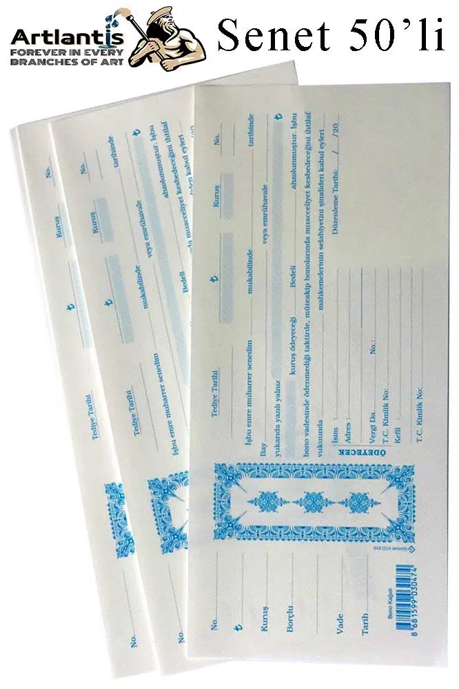 Ürün Adı: Senet Koçanı 50 li 1 Paket Senet Bono Borç Alacak Senedi Poşetli 12x25 cm