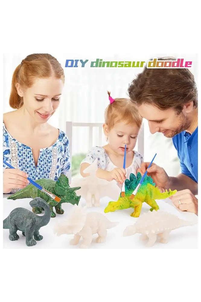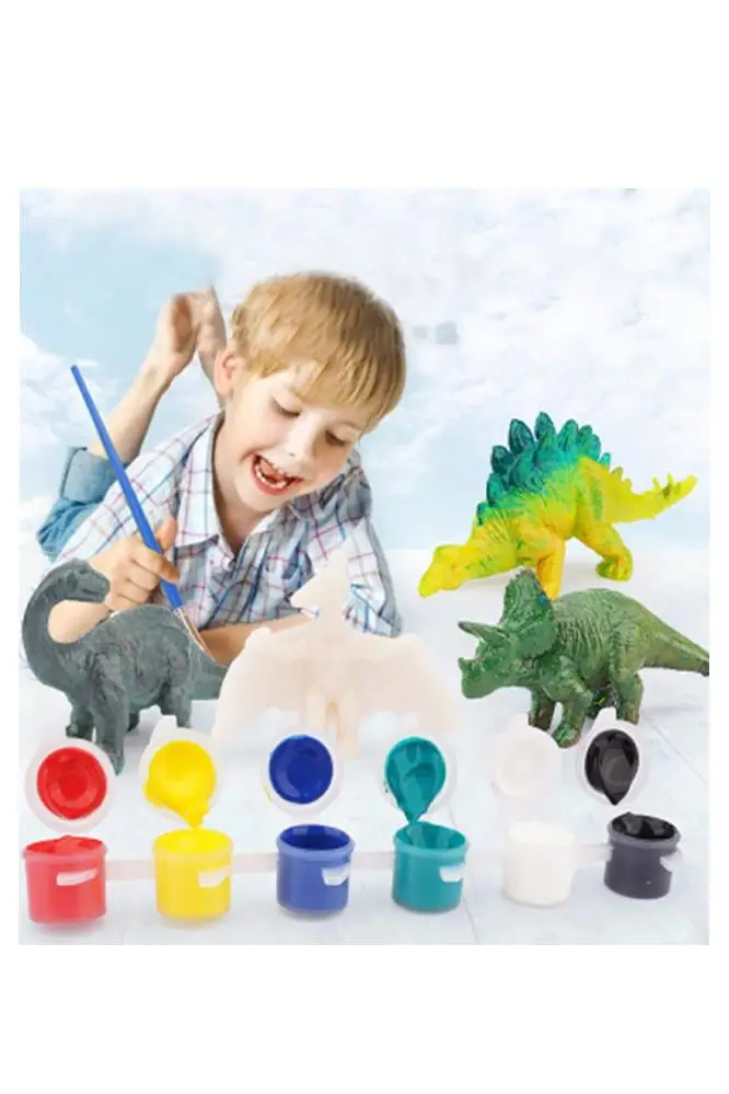 Ürün Adı: Seramik Dinazor Boyama Seti 1 Paket Dinazor Boyama Etkinliği Alçı 4 Adet Dinazor Modeli 6 Renk Boya ve Fırça