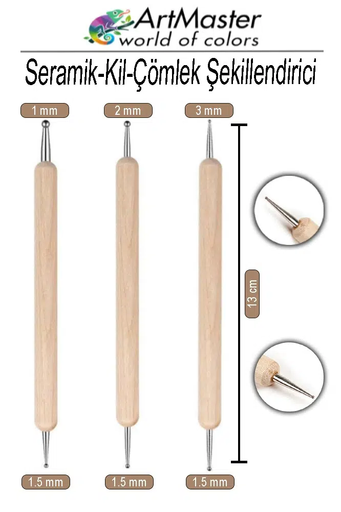 Ürün Adı: Artmaster Seramik Kil Çömlek Şekillendirici 3 Lü 1 Paket Oyma Seti Seramik Hobi Modelaj Heykel Tasarım Sanat Şelillendirici