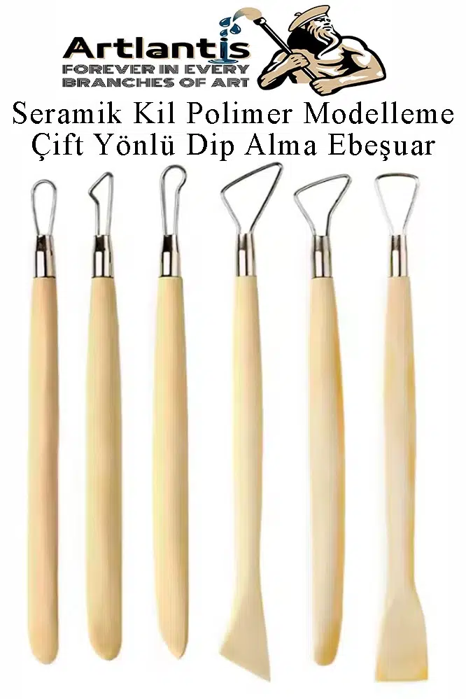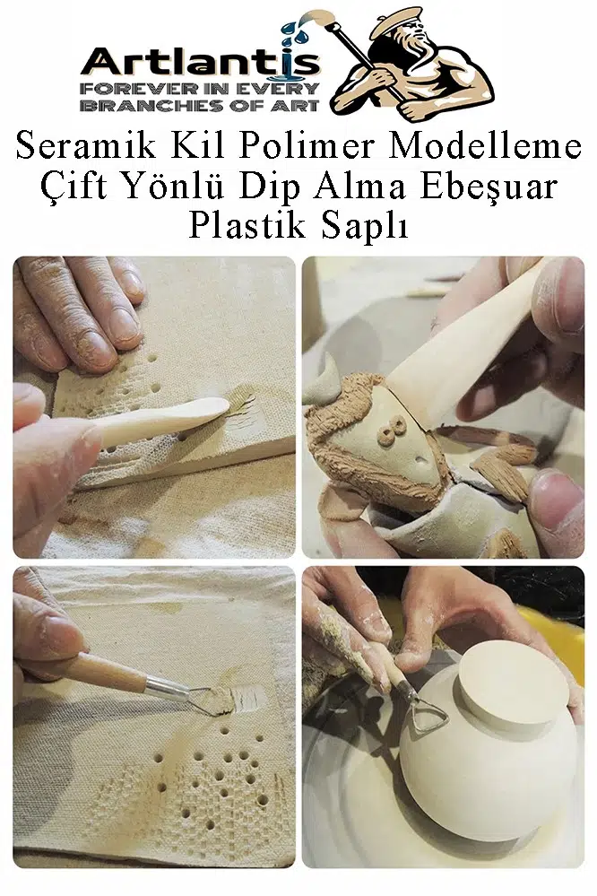 Ürün Adı: Seramik Kil Polimer Modelleme Çift Yönlü Dip Alma Ebeşuar 6 lı 1 Paket Seramik Kil Şekillendirici Plastik Saplı