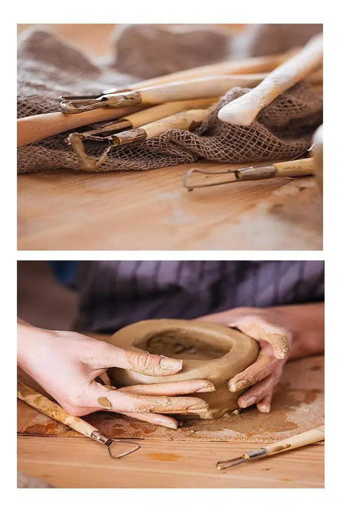 -·- Çift taraflı: Ahşap kil aletlerin bir kısmı çift taraflıdır ve pürüzsüz ahşap kulplar, her bir aletin rahat tutulmasını sağlar. - Çeşit Şekiller: Pürüzsüzleştirme, temizleme, oyma, şekillendirme ve şekillendirme için uygun çok çeşitli şekiller. - Her seviyede çömlekçilik ve heykeltıraşlık için geçerlidir: yeni başlayanlar, hobiler veya profesyoneller