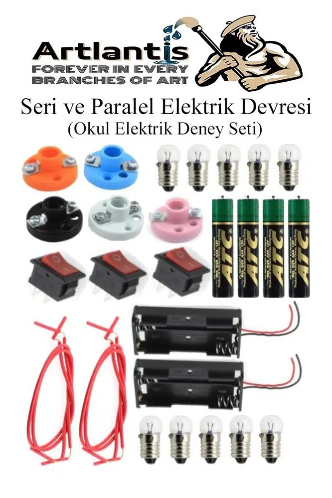 Ürün İçeriği: Ampul 10 Adet Mini Duy 5 Adet Anahtar 3 Adet Pil Yatağı 2 li 2 Adet 1,5volt Kalem pil 4 Adet İletken Tel 2 Adet, Mukavva 1 Adet