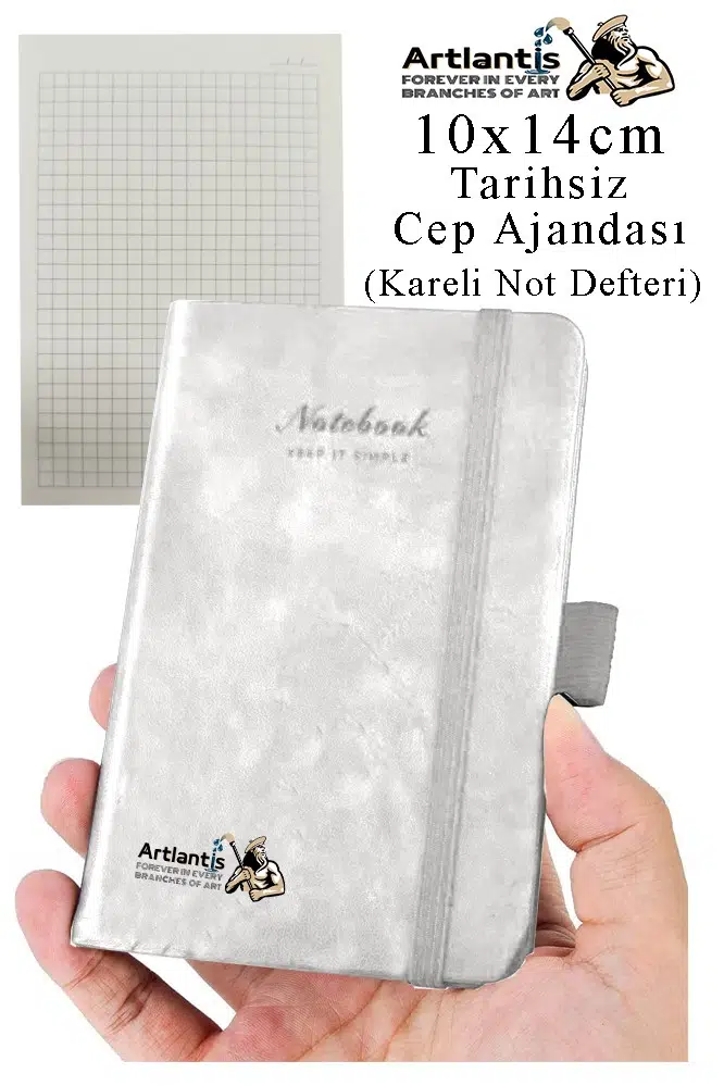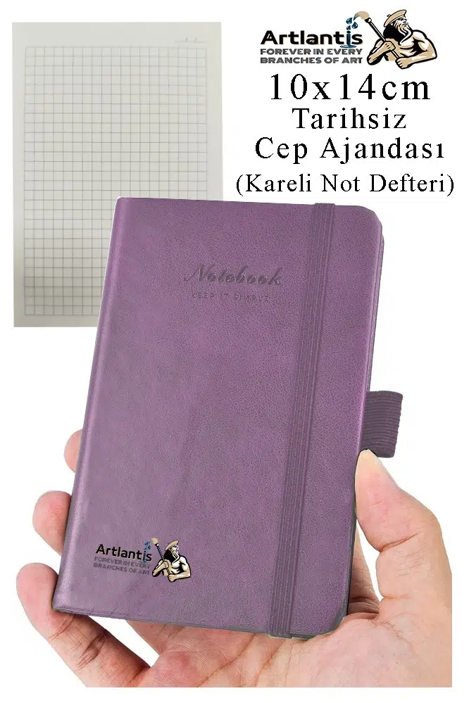Ürün Adı: Sert Kapak Tarihsiz Ajanda 10x14 cm 1 Adet Sert Kapak Lastikli Not Defteri Cep Ajandası Kareli Kalem Tutuculu Thermo