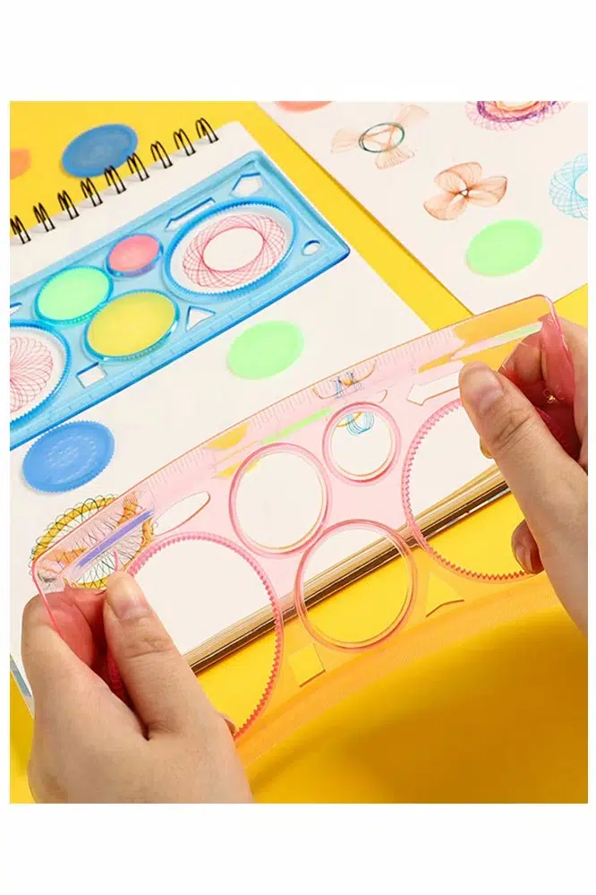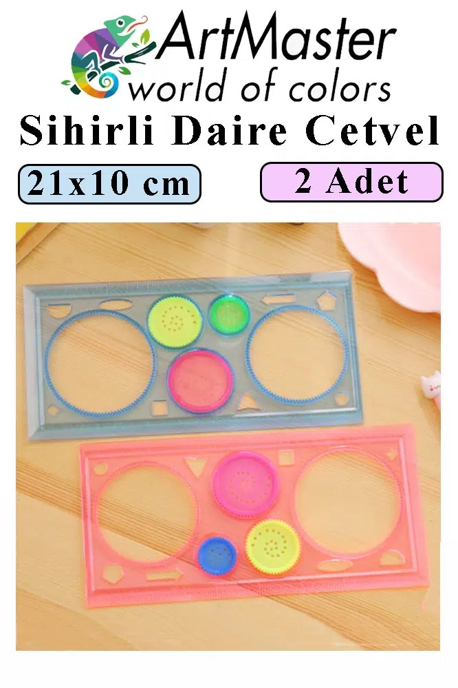 Ürün Adı: Artmaster Sihirli Cetvel 2 Adet Plastik Sihirli Daire Cetvel Desen Şablon Çizim Sınıf Okul Karne Hediye