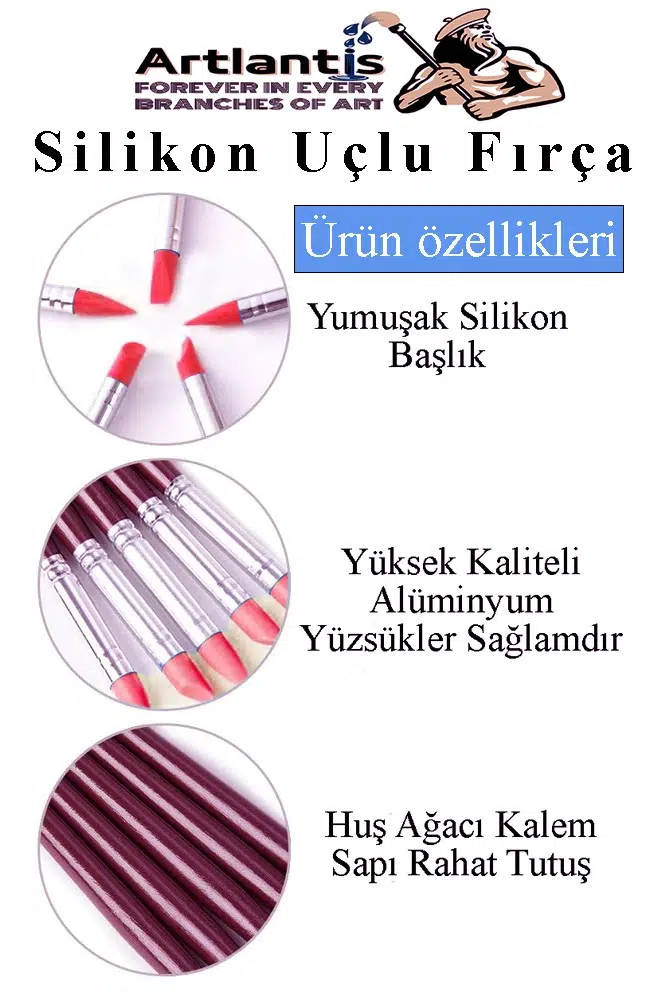 Ahşap Sap Silikon Kalem Başlığı; Dayanıklı silikon kalem başlığı size kontrol ve hassasiyet kombinasyonu sunar.Ürün Boyutu: Uzunluk: 18 cm Kalem Başlığı Uzunluğu: 2,5 cm; Sap Çapı: 1,5 cmFarklı Boyutlar: Her birinin farklı boyut ve şekli vardır, oyma, modelleme, kesme, sıyırma, yontma ve daha fazlası için kullanılabilir.Pürüzsüz Sap: Pürüzsüz sap yüzeyi uzun süreli çizimlerle elinizde zorlanmanızı sağlamaz.Şunlar için kullanılır: Yağlı boya, pastel ovma, çömlek kil rengi şekillendirme, karıştırma ve kil şekillendirme için mükemmeldir. Ev, okul ve dış mekan kullanımı için ideal0