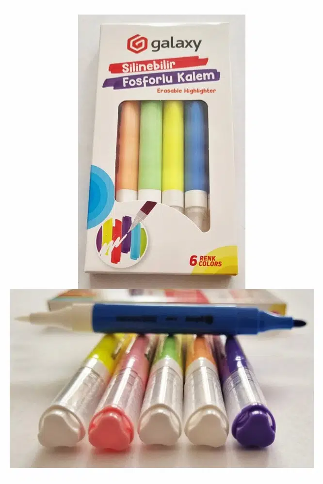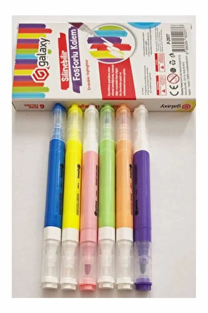 Ürün Adı: Silinebilir Fosforlu Kalem 6 Renk 1 Paket Galaxy Silinebilir İşaretleme Kalemi Çift Başlı Pürüzsüz Yazma Silme Fixpoint